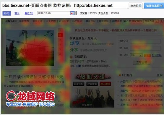 优化入口页面设计和内容入口页面设计和内容很大程度上影响访客是不是选择进一步的浏览,或者怎么样浏览,到达最后的转化页才是我们期望的。对于 PV 较大的页面,推荐使用百度统计热力图(页面点击图)功能,此功能详见说明:http://yingxiao.baidu.com/support/topic/32.html 访客是不是如你所愿的点击一目了然: